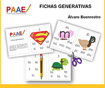 Grupo de catorce tarjetas, cada una correspondiente a una consonante, Cada tarjeta contiene una ilustración, en la que por su forma puede sobreponerse una consonante, y cinco sílabas directas que se forman con las vocales. Las consonantes seleccionadas son: “s”, “m”, “p”, “l”, “t”, “f”, “n”, “d”, “v”, “g”, “c”, “j”. Se elaboraron retomando la idea de fichas generativas de Jaime Jiménez en el libro Método antidisléxico para el aprendizaje de la lecto-escritura.