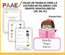 Carpeta de actividades 3 Hojas de trabajo para la lectura de palabras con grupos homosilábicos