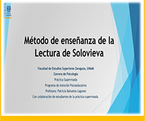 En esta presentación se describe el método de enseñanza de la lectura propuesto por Solovieva y Quintanar. Se exponen los conceptos de los que se compone el método, sus fundamentos teóricos y metodológicos y se describen los materiales y el procedimiento de aplicación. Es de mucha utilidad para enseñar a leer a niños de los primeros grados escolares.